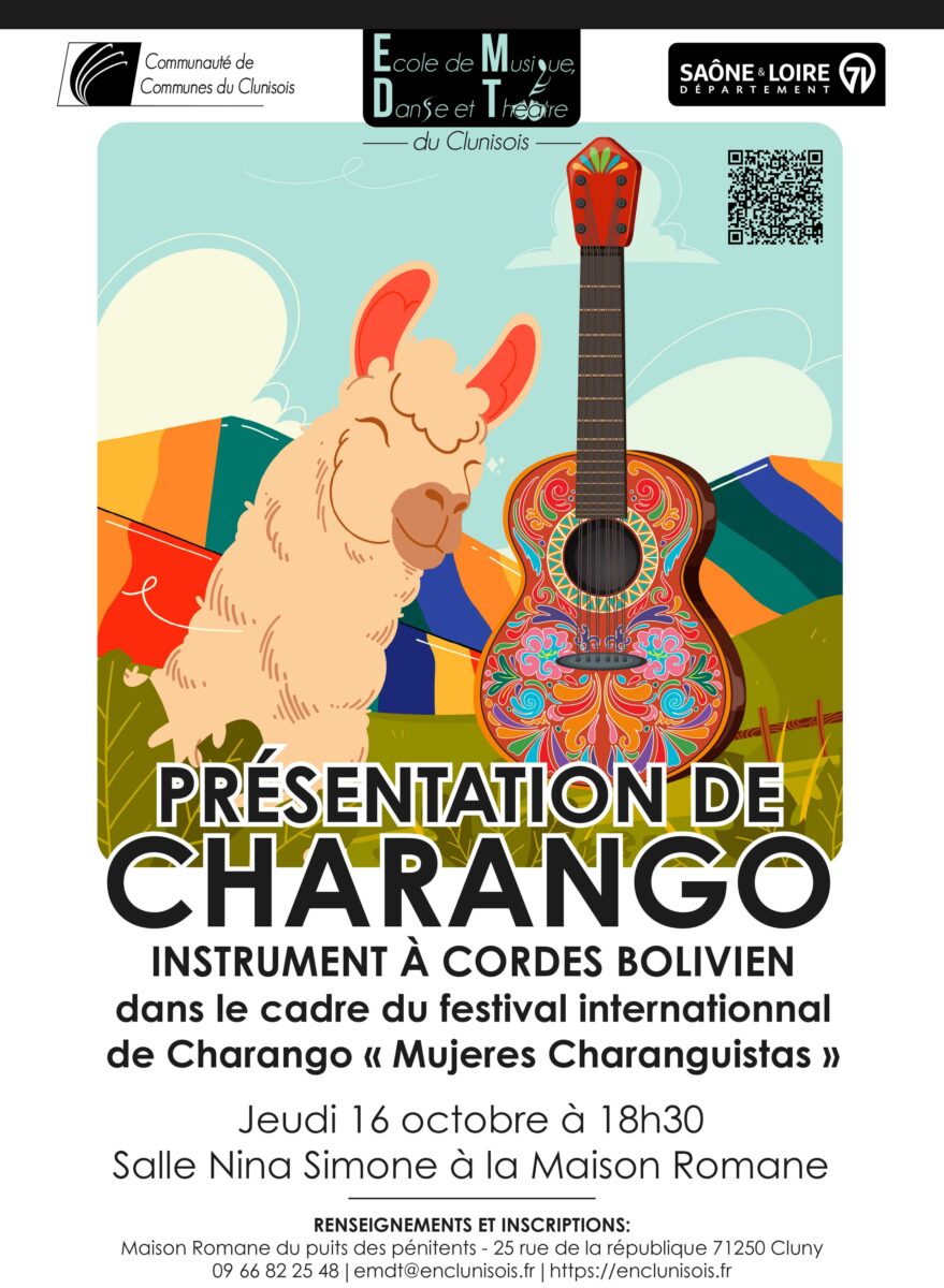 L’École de Musique, Danse et Théâtre du Clunisois (EMDT) invite le public à une présentation du charango, instrument à cordes traditionnel bolivien, le jeudi 16 octobre à 18h30, à la salle Nina Simone de la Maison Romane à Cluny.