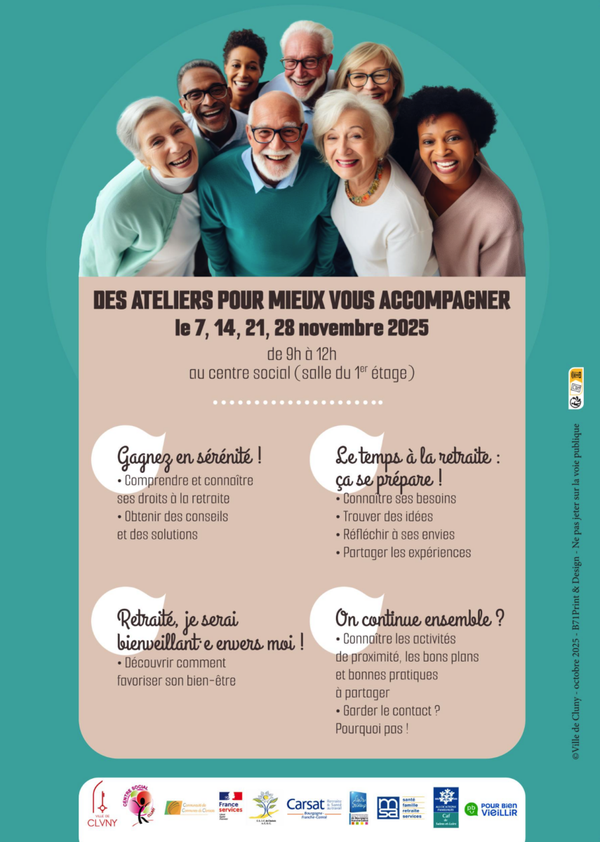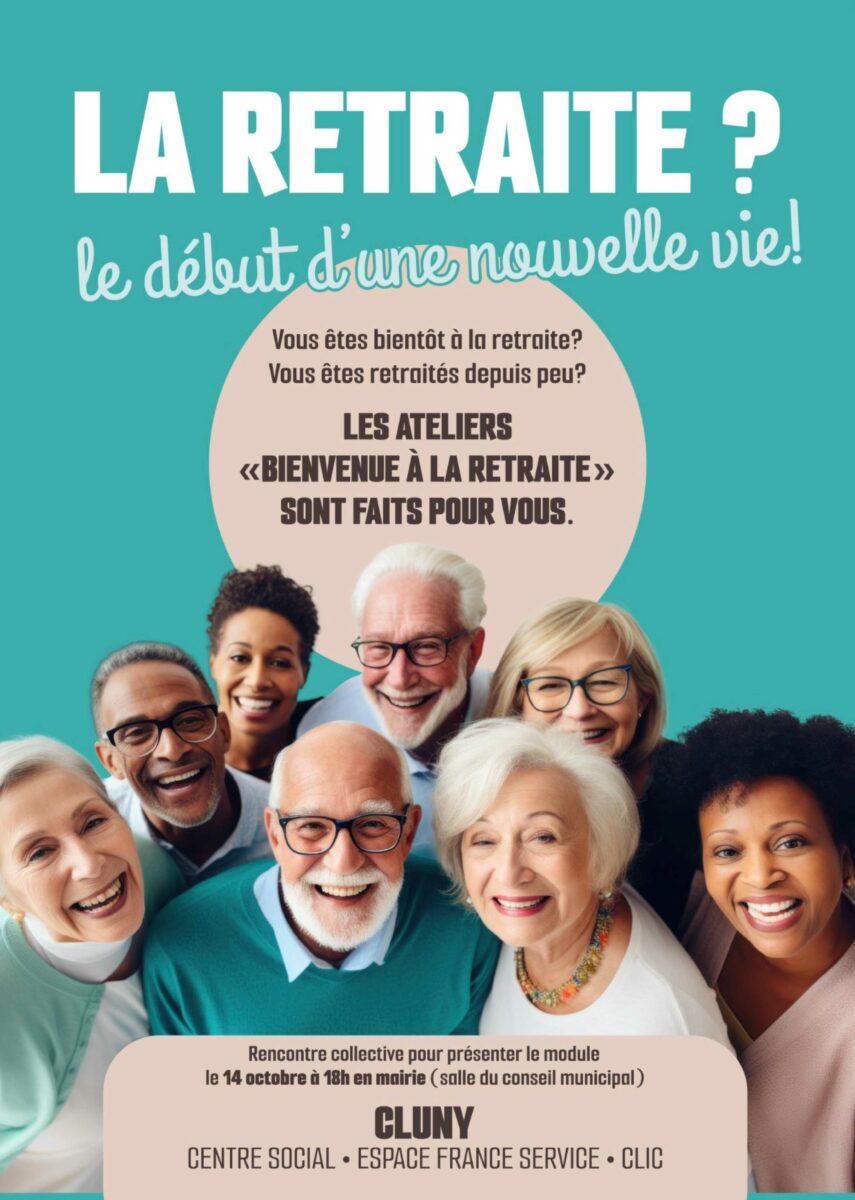 Vous partez bientôt à la retraite ou vous l’êtes depuis peu ? Les ateliers “Bienvenue à la retraite” sont faits pour vous ! Ces temps d’échanges et d’information, organisés par le Centre social de Cluny, l’Espace France Services et le CLIC, ont pour objectif d’aider chacun à préparer cette nouvelle étape de vie sereinement.