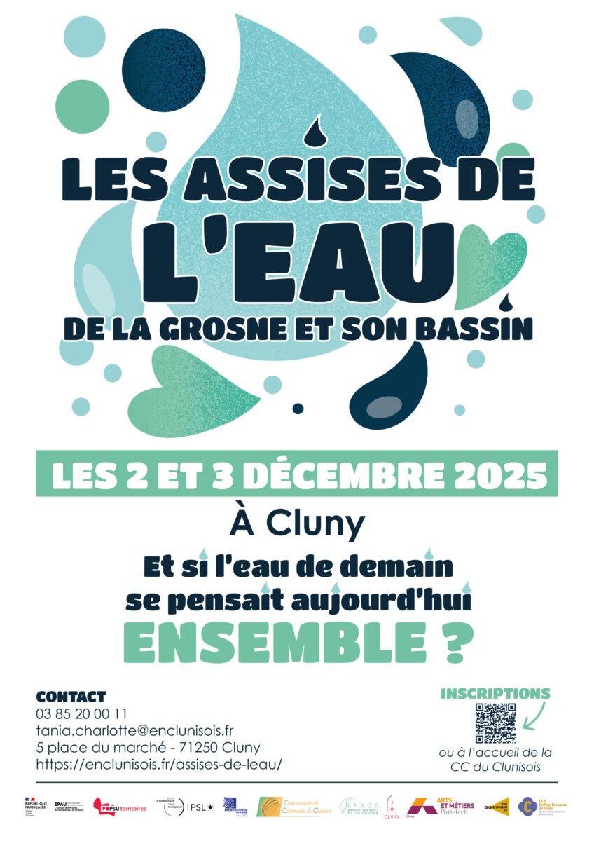 La Communauté de communes du Clunisois, en partenariat avec l’établissement public d’aménagement et de gestion de l’eau du bassin versant de la Grosne (EPAGE GROSNE) et plusieurs acteurs locaux, organise les Assises de l’eau du bassin versant de la Grosne les 2 et 3 décembre 2025 à Cluny.