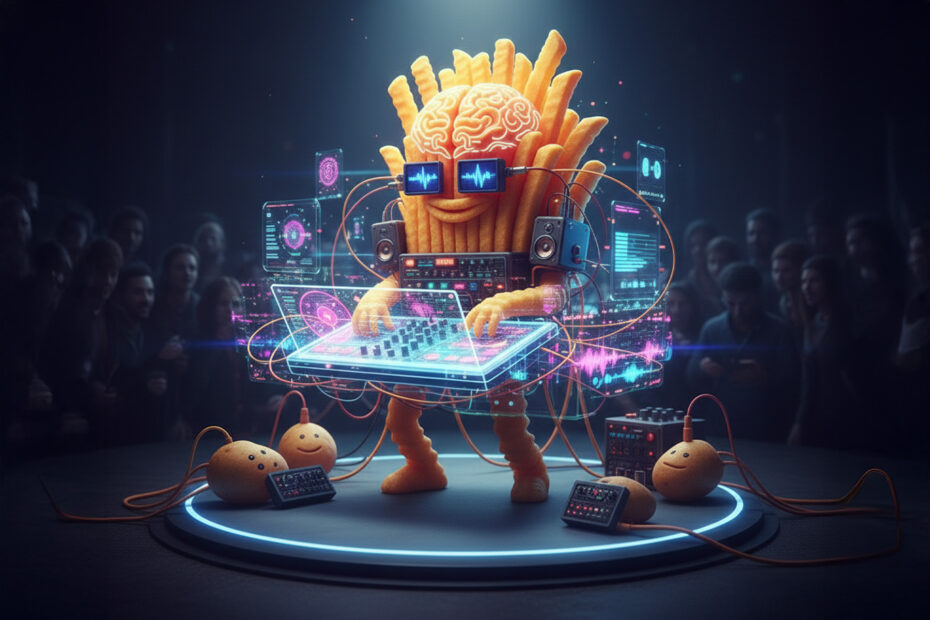 La Frite est une machine musicale composée de boîtes à rythmes, de synthétiseurs et de samplers, tous reliés à un « cerveau » central. Guidés par un musicien, les jeunes prennent rapidement en main les sons, apprennent à les transformer et construisent ensemble des morceaux originaux. Une véritable aventure collective, où l’écoute, la coopération et la créativité sont au cœur du processus.