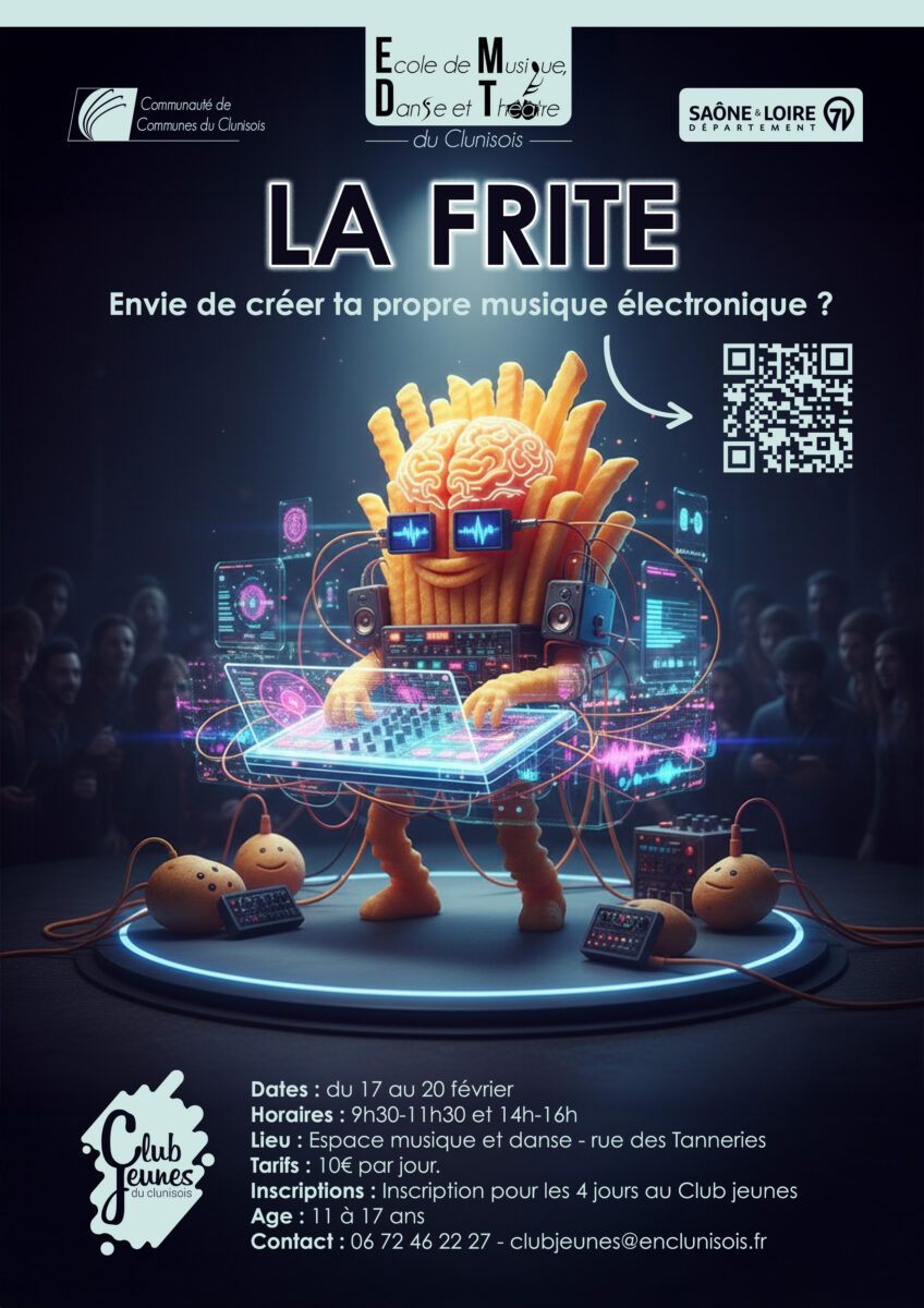 Pendant les vacances d’hiver, l’École de Musique Danse et Théâtre et le Club jeunes du Clunisois proposent aux jeunes de 11 à 17 ans un stage de création musicale électronique autour d’un instrument collectif original : La Frite.