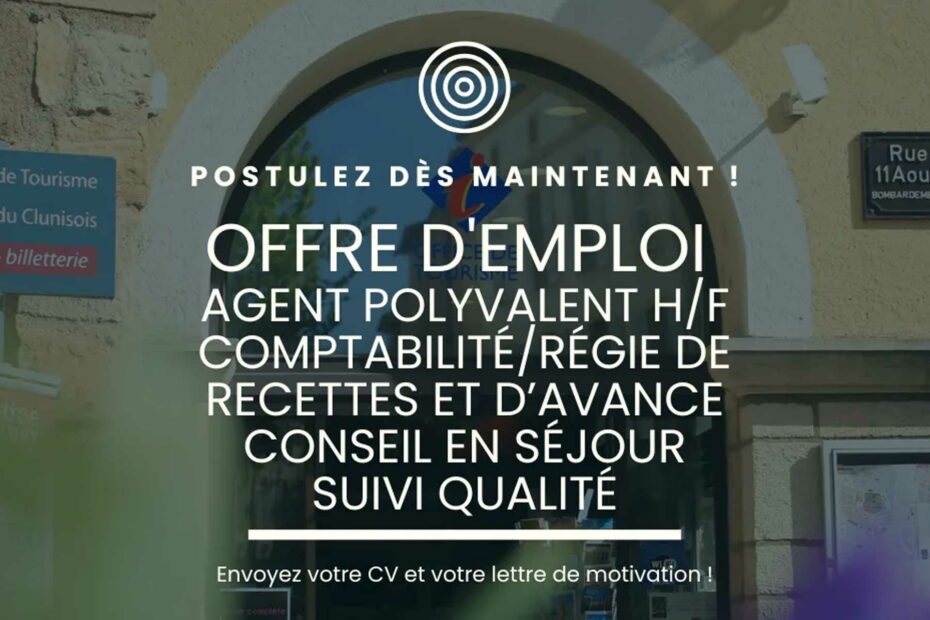 L’Office de Tourisme de Cluny Sud Bourgogne recrute à compter du 02 mars 2026 une personne pour renforcer le pôle comptabilité tout en soutenant les équipes d’accueil (voir détail de l’offre ci-dessous).