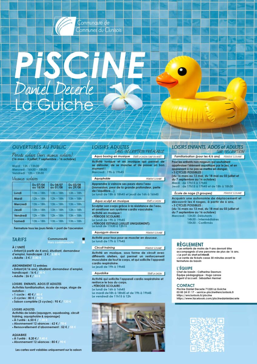 Pour toute information complémentaire, n’hésitez pas à contacter la piscine Daniel Decerle au 03 85 24 51 17 ou par mail à service-piscine@enclunisois.fr. Venez profiter de la piscine et de ses activités pour passer un agréable moment en famille ou entre amis !